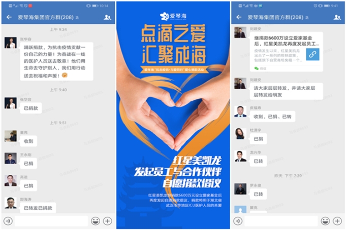 为响应车建新董事长和红星美凯龙控股集团号召,汇聚爱心力量,支援前线抗疫,3月4日至31日,爱琴海集团发起“抗击疫情·与爱同行”爱心捐款活动,号召员工、商户及外包人员共尽绵薄、传递温情,将一份份爱心化作一笔笔善款,汇聚成大爱的磅礴暖流,以实际行动关爱一线医护工作者。