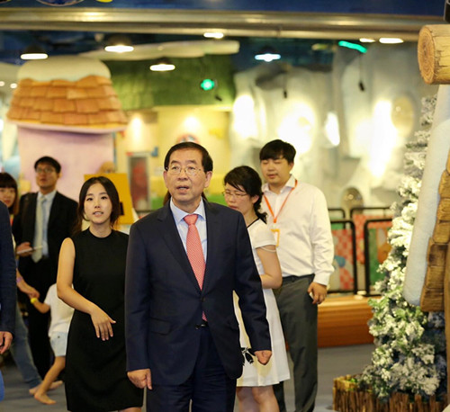 8月5日,首尔特别市市长朴元淳一行专程造访了北京爱琴海购物公园。