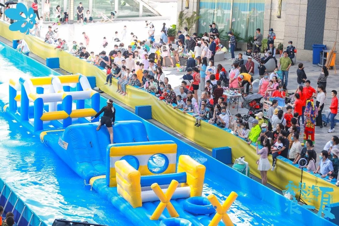 趣浪假期清凉开启,昆明瑞鼎城爱琴海于7月4日在外广场特别打造了一场以丰富市民群众休闲文化生活为主题的50米大型水上娱乐项目“乘风破浪大冲关”,为市民提供了一个夏日消暑的周末水上娱乐新胜地。