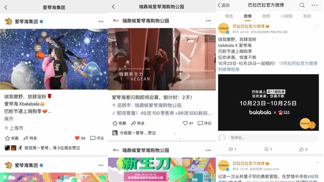 除了线上营销,线下场景化营销活动也最为吸精。此次嗨购季“超级周末”的一大特色活动是,爱琴海与balabala携手,助推2020第五届巴粉节,全国爱琴海外幕墙进行了联动视频,并以“快闪+走秀”的形式为品牌进行了宣传造客蓄势。