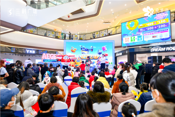 以多样化活动与消费者同频,增强流量引力的同时,也注重同步落地SP活动,赋能品牌商户。开业期间,成都三利爱琴海购物公园引入超人气动画IP「超级飞侠」,开展一系列的超级飞侠见面会、舞台剧表演活动,以及“尖叫喜剧节”、“不着集”市集IP等主题活动,分别满足了家庭客群,以及时尚年轻客群的需求爱好。同时,联合品牌商户,推出零售、餐饮团购、消费立减、消费满额赠等折扣活动、促进销售转化,与品牌商户实现互利共赢。