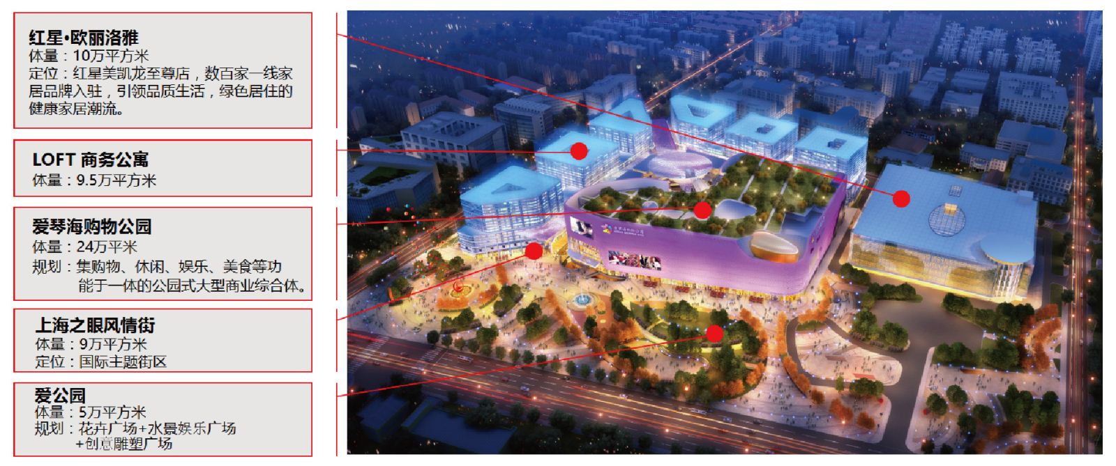 上海爱琴海购物公园位于新华·红星国际广场内,其中还包含红星·欧丽落雅至尊家居MALL、上海之眼风情街、精奢LOFT商务公寓、生态公园等诸多业态,是上海最大体量的商业综合体。