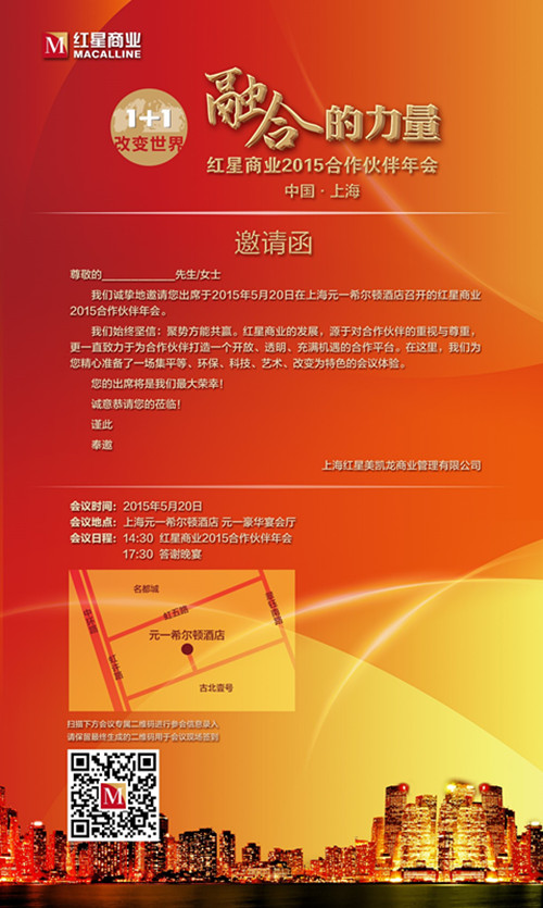 2015红星商业合作合作伙伴年会将于5月20日在上海元一希尔顿酒店盛大举行。