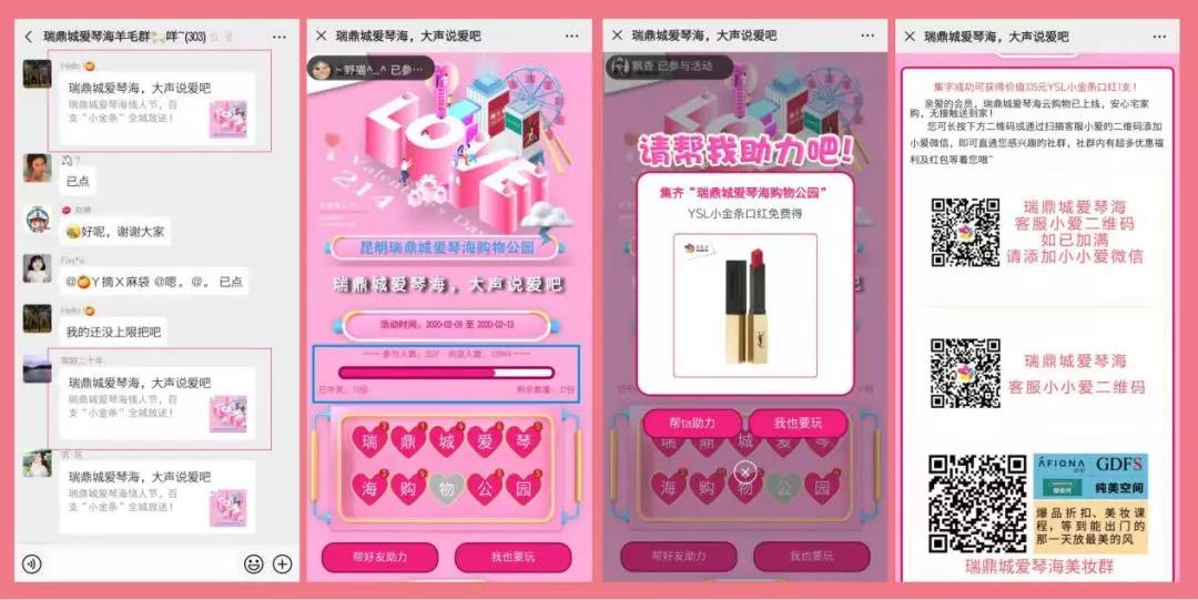 为了帮助商户更加轻松的开展线上营销,“爱闪购”平台还为入驻商户开发了大量全新的营销工具,抽奖、集福、裂变红包、限时优惠券诸多插件,拿来即用,随时解决商户的营销需求。昆明瑞鼎城爱琴海购物公园为商户推出的情人节助力活动,推出8小时点击量超过10万+,实现为商户的精准导流。