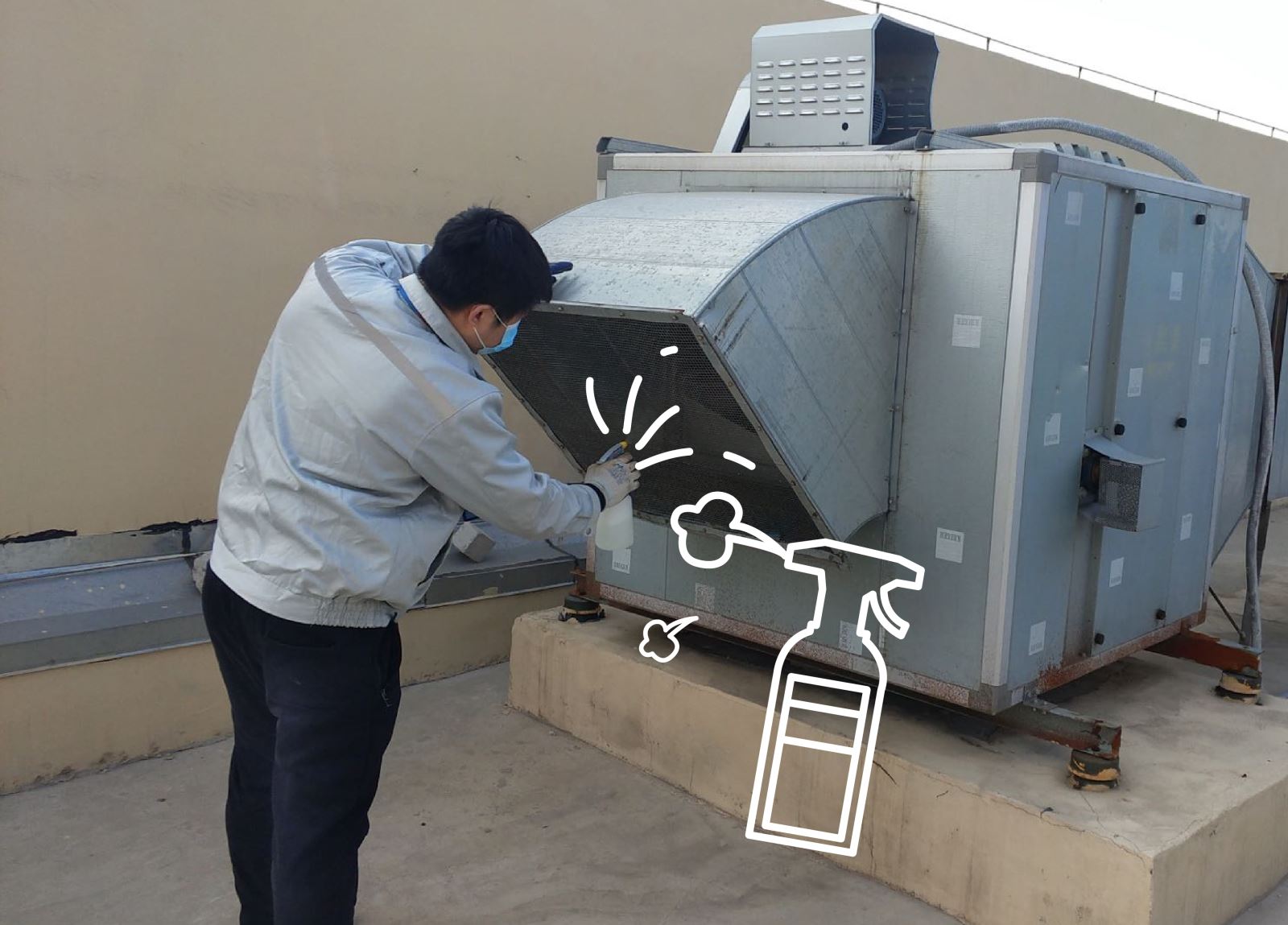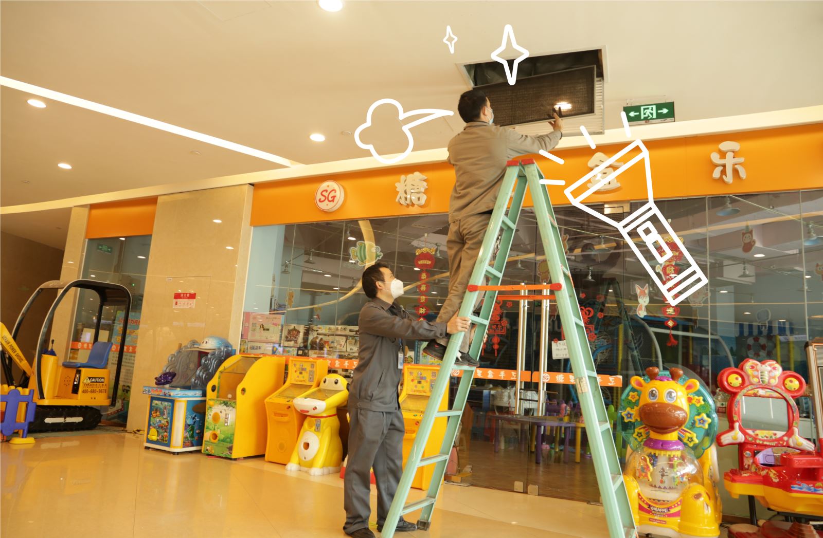 爱琴海的工程检修人员,已经完成了公区及商铺过滤网、新风过滤网、机械排风设备的更换以及清洗消毒。