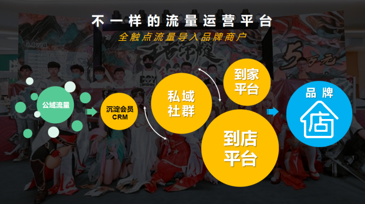 而在新“售前+售中+售后”的体系下,则可以获取线上线下全域流量,进而从公域流量导入CRM并通过“私域社群+到家平台+到店平台”三大平台进行私域流量运营,最终可以把更有效的流量输出给品牌商户。