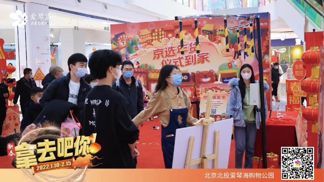 爱琴海用时下流行的“拿去吧你”作为营销主题,精准贴合年轻用户群体的话题,吸引了年轻人的关注和流量。北京北投爱琴海购物公园开设了京东物流年货快闪店和盒马市集,呈列的年货商品为消费者购置年货提供了丰富的选择。春节期间开展“赏年画·过大年”、“助力冬奥·虎力全开”等多档消费者喜闻乐见的新春活动,打造新春购物及体验目的地。火红的灯笼、传统的年画以及精美的手工艺品,将北投爱琴海购物公园打造得年味十足。活动期间,每天报名参观人数超过2000+人次。