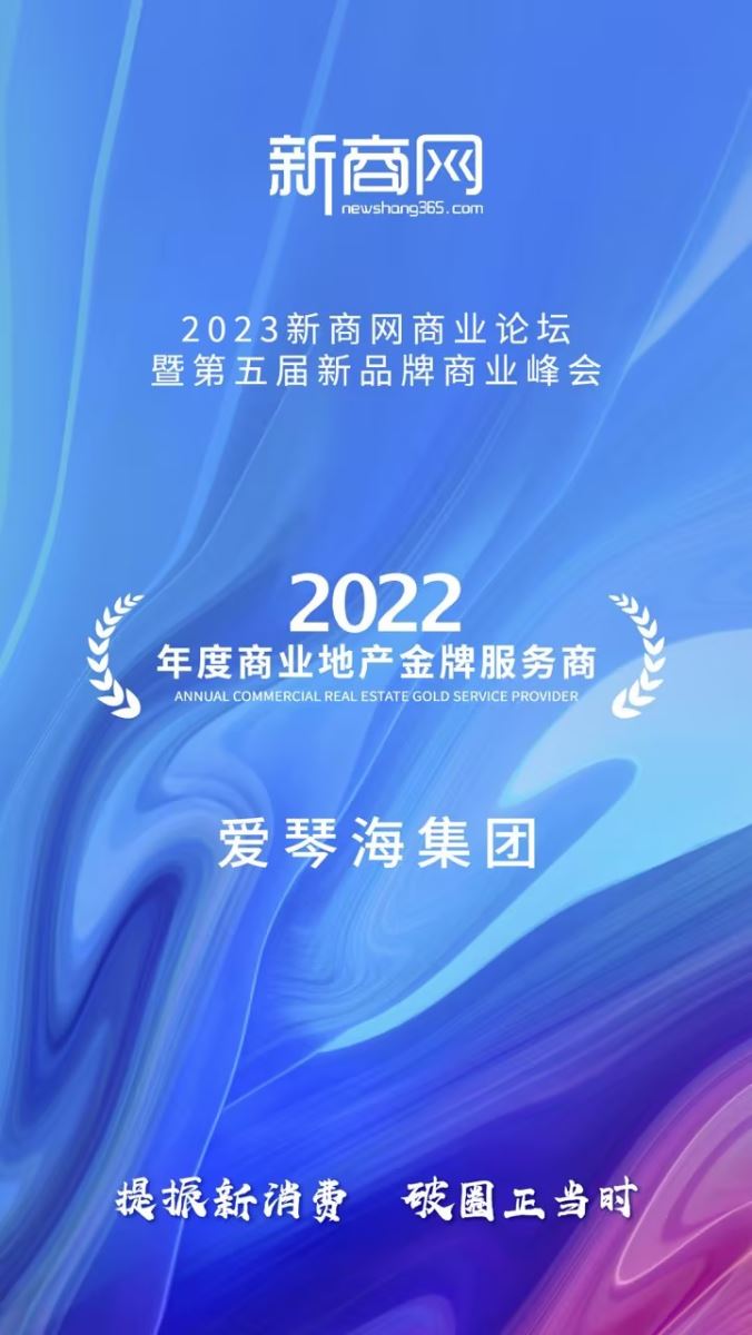 6月30日,在2023新商网商业论坛暨第五届新品牌商业峰会上,爱琴海集团凭借优秀的商业地产运营实力及服务能力,荣获「2022年度商业地产金牌服务商」大奖。